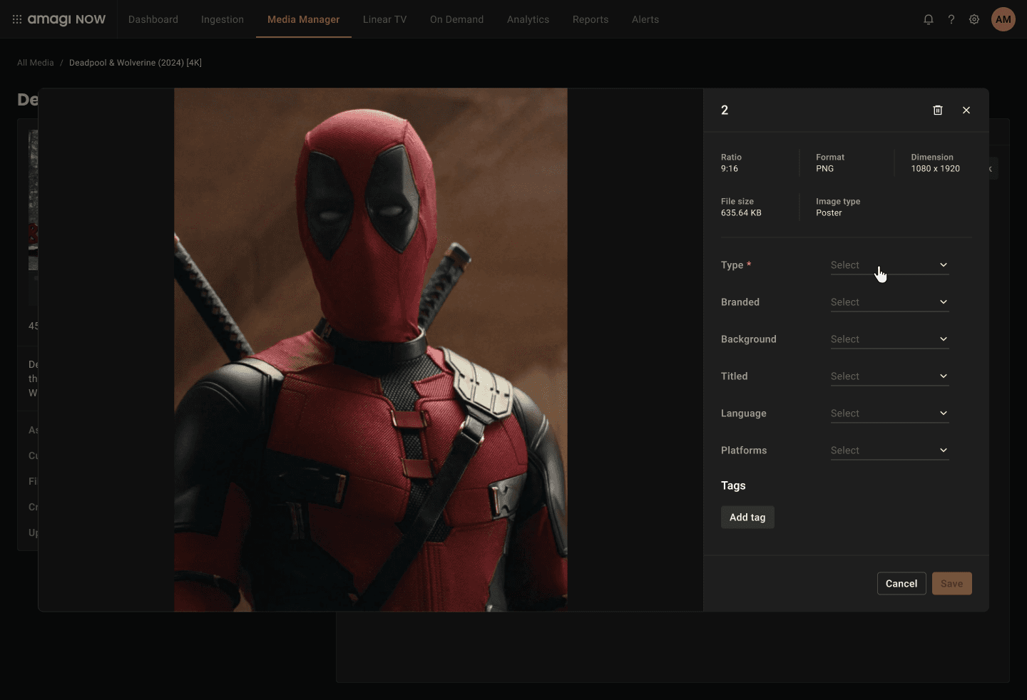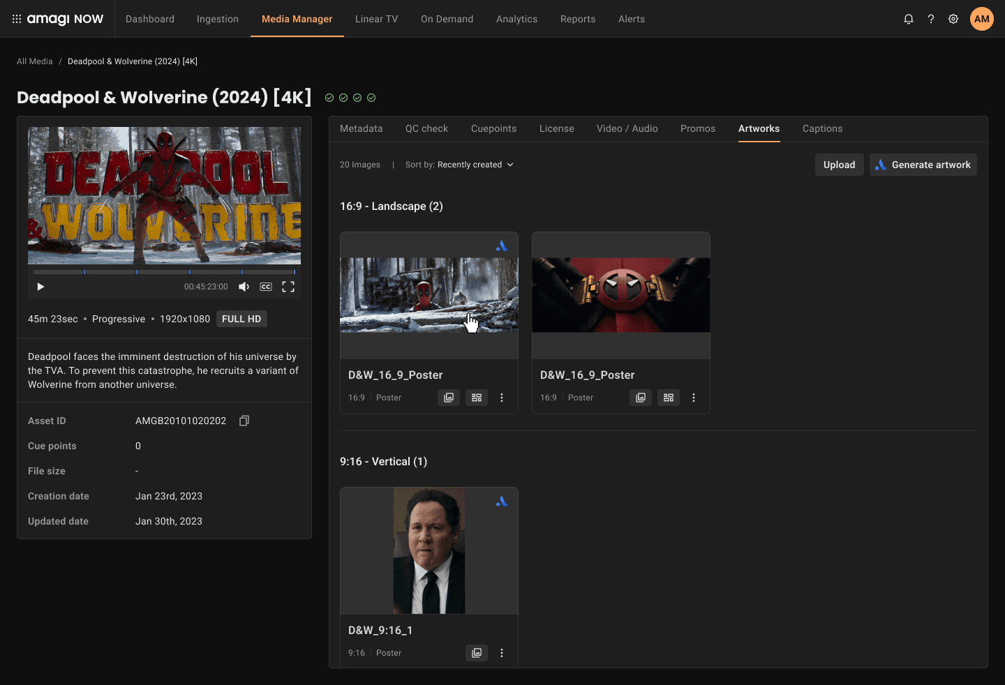 Most content providers supplied only 1–2 high-quality images per asset—typically in a standard 1920×1080 format. These had to be manually cropped and resized into multiple aspect ratios (1:1, 9:16, 4:3) for social media, EPGs, and OTT platforms. This transformation effort was repetitive, tedious, and often required external tools or vendor support.